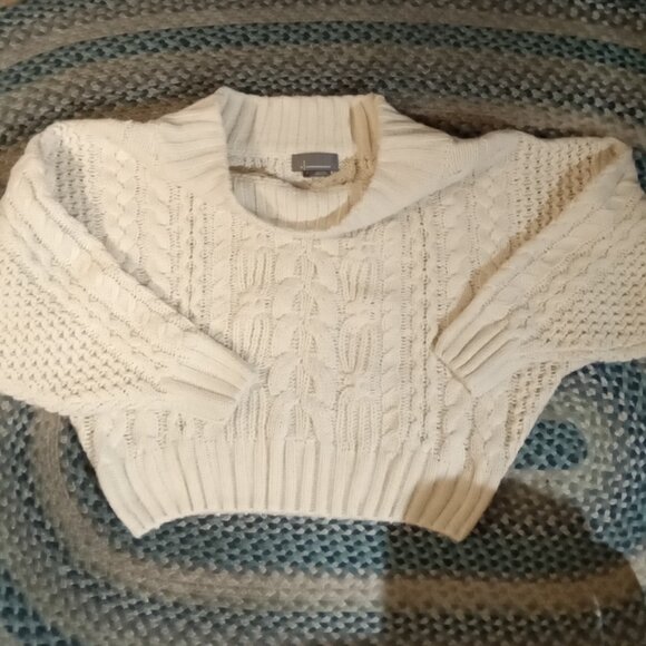 By Anthropologie Sz S beige Cable knit Sweater boxy Fit slightly cropped