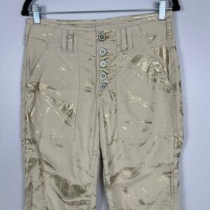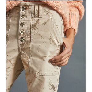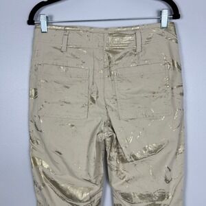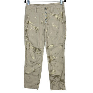 By Anthropologie The Wanderer Utility Pants in Gold Metallic Button Fly Size 28