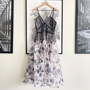 By Anthropologie V-Neck Halter Dress in Black White Medium