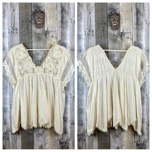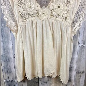 By Anthropologie V-Neck Lace Swing Top in Cream Ivory Size Medium.