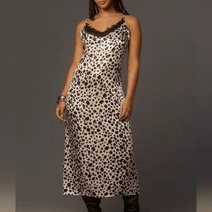 By Anthropologie V-Neck Open-Back Animal Print Slip Midi Dress Size Large NWT