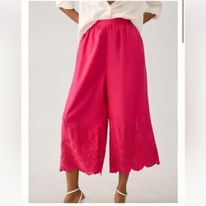 By Anthropologie Wide-Leg Eyelet Crop Pants NWT