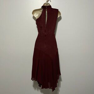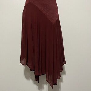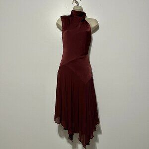 By Anthropologie Womens Asymmetrical Draped Midi Dress Size 2 Maroon Balletcore
