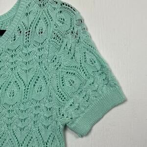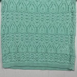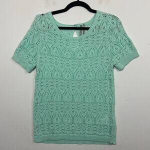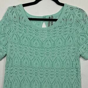 By Anthropologie Women's Blue Green Crochet Stitched Sweater Tee Size Large