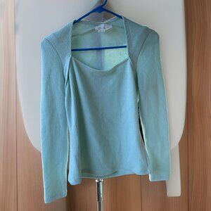 By Anthropologie Women’s Small Sweater Knit Ribbed Square Neck Mint Green Top