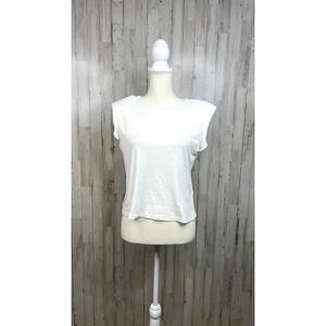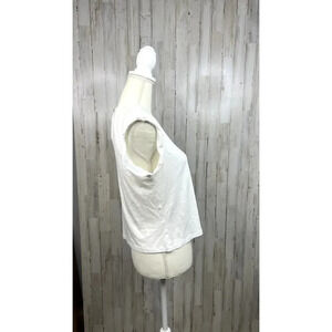 Keywords: Anthropologie, women's tank, white tank, sleeveless top, casual wear, basic style, structured silhouette, keyhole back, lightweight fabric, pre-owned, size S, women's clothing, summer top, everyday wear, white top