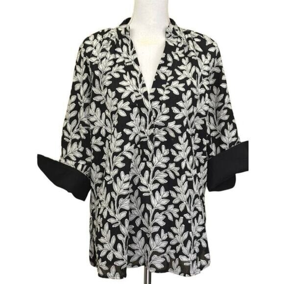 By Anthropologie black/white leaf print top, medium, graphic, edgy, statement