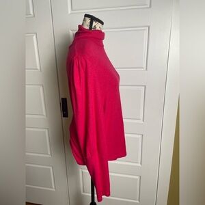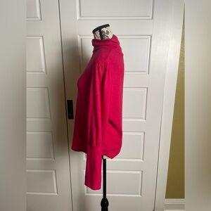 By Anthropologie hot pink turtleneck sweater top puff long sleeves soft knit L