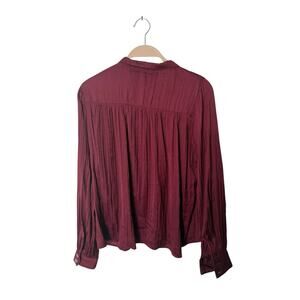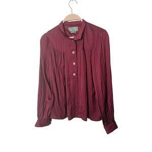 By Anthropologie satin pleated 1/2 button burgundy blouse womens size XS