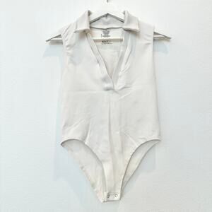 By Anthropologie white collared seamless deep v-neck sleeveless bodysuit S/M
