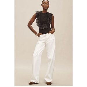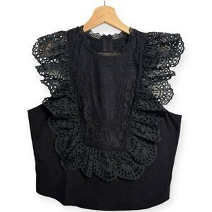 By Anthropologie Eyelet Ruffle Black Bib Tank