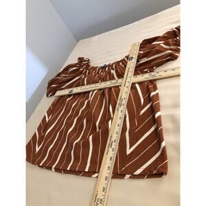 This By Anthropology women's blouse in size Small features an off-the-shoulder neckline with pleated and elastic accents, creating a bohemian Barbiecore Y2K style. The short balloon sleeves and cropped design make it perfect for resort wear, vacations, or casual occasions during summer, fall, and spring. Made of polyester and spandex with a striped pattern in multicolor, this lightweight top ties at the back and is collarless for a relaxed fit suitable for all seasons. Perfect for those seeking a colorful, beachy, bohemian aesthetic.