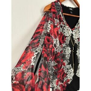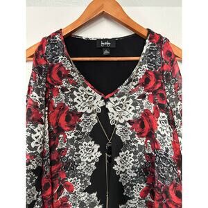 By & By Black Red Split Front/Back Top Lace Floral Print Built-in Tank Small NWT
