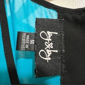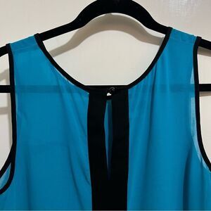 By & By Colorblock Sexy Sheer High Low Sleevless Chiffon Blouse Blue & Black MED