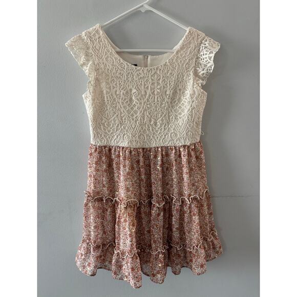 By & By Girl Lace Floral Tiered Dress Size 14 1/2 Spring Mini Neutral