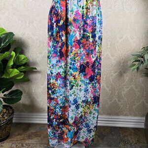 By & By Size XS Halter Neck Maxi Dress Multi Color Splatter Print Elastic Waist