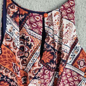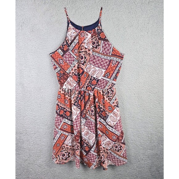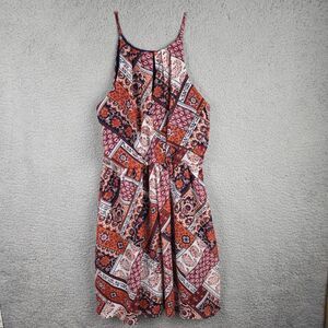 By & By Sun Dress Womens S Orange Blue Patchwork Colorful Lined Shoulder Straps