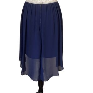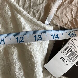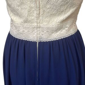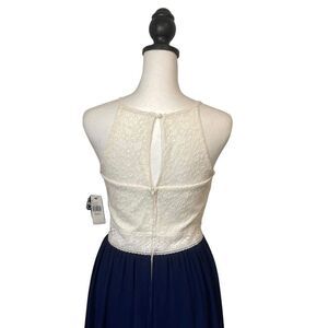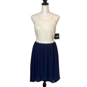 By & By Womens Lace Dress Lined Hi Low Fit Flare Sleeveless Cream Navy Blue 3