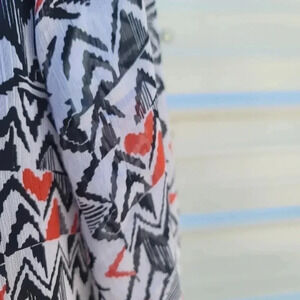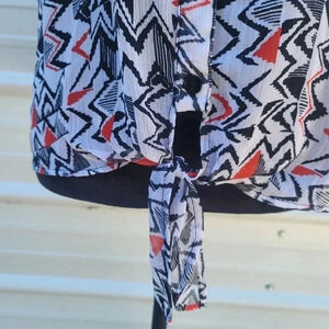 By & By Women's Size L Black Red Sheer Blouse Cold Shoulder Waist Tie 3/4 Sleeve
