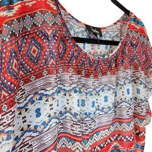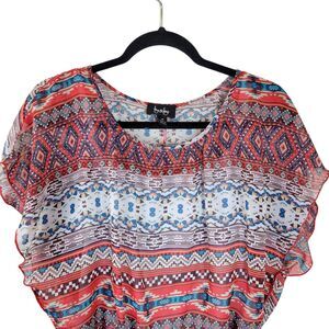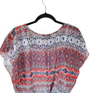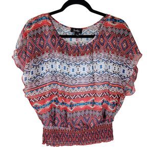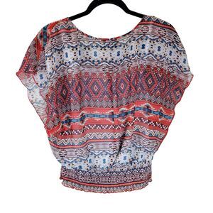 By & By Womens Sz M Red White Aztec Cap Sleeve Blouse