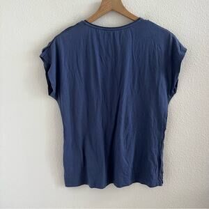 By Chico’s Pre-Wrinkled Blue Cotton Modal Shirt. Distressed front panel.