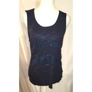 By Chicos embellished tank. Lightweight material with wide silk ribbon and beads. Made in India. Stretchy fabric - viscose