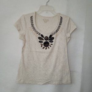 By Chicos Top Womens 0/S-4 Short Sleeve Wooden Beaded Detail Scoop Neck Neutral