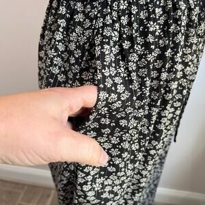 By Clara Paris Black White Floral Jumpsuit Wide Leg Romper Size L Boho
