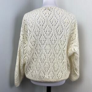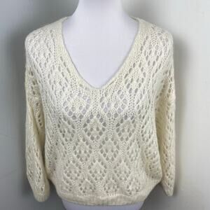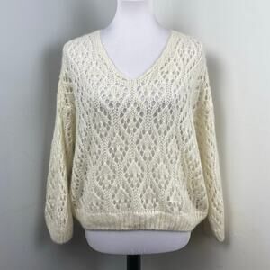 By Coco Made in Italy Ivory Boho Mohair Open Knit V Neck Sweater Large