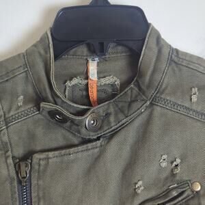 By Deep Army Green Cropped Moto Jacket Distressed Exposed Zipper Small/Medium