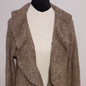 This brown colored sweater is a perfect addition to almost any outfit. You can wear it open or closed with a hook & eye closure. New!