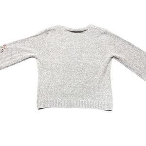 This cozy gray knit cardigan is a must-have for any wardrobe. The soft knit fabric is perfect for layering, and the embroidered flower sleeves add a touch of femininity.