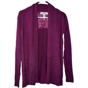 By Design Purple Lace Back Open Front Cardigan Sweater Women's Small