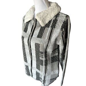 By Design Women's Cardigan Sweater Gray Ivory Black Thelma Sherpa Size Small NEW