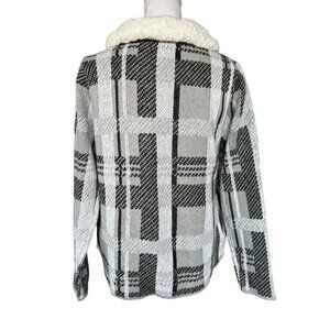 By Design Women's Cardigan Sweater Gray Ivory Black Thelma Sherpa Size Small NEW