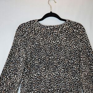 This By Design women's cardigan is a must-have for any wardrobe. Featuring a classic button front design. The cardigan is made of a super-soft rayon and nylon material, making it lightweight and perfect for all seasons. The leopard print pattern adds a touch of animal-inspired style to any outfit. The long sleeves and collarless design make it a versatile piece that can be dressed up or down depending on the occasion. This sweater is machine washable for easy care and maintenance. Like new Condition.