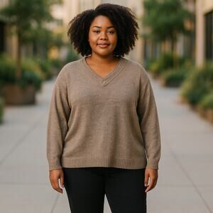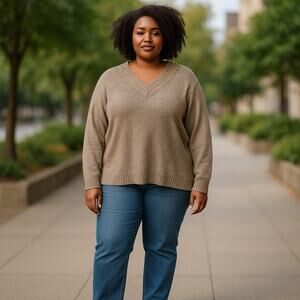 By Design Womens Sweater Sz 3X Sugar Cookie Rainbow Cableknit V-Neck Pullover
