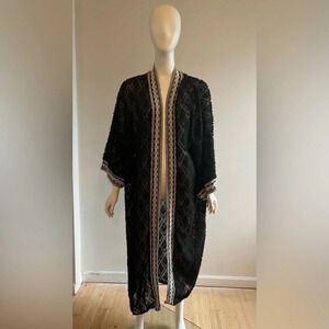 By ESQ One Size Sheer Black Kimono Coat Throw Robe Beach Bohemian