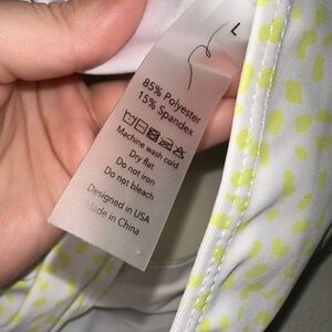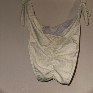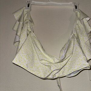 By Egreis yellow spotted off shoulder bikini top ruched bikini bottom L NWT