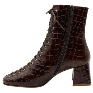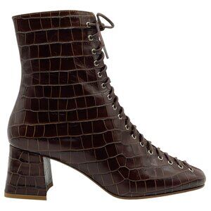 By Far Brown Croc Embossed Leather Becca Lace Up Booties
