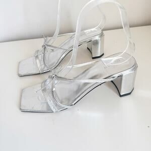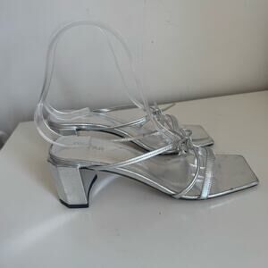 By Far June Metallic Bow Strap Square Toe Sandal 35