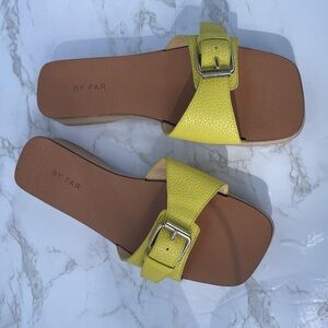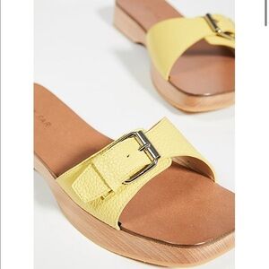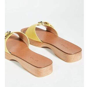 An elevated summer slide, these BY FAR clogs combine a buckle-strap upper crafted from yellow pebbled leather with a sleek wooden platform for a simple-yet-stylish sandal you’ll want to wear everywhere.