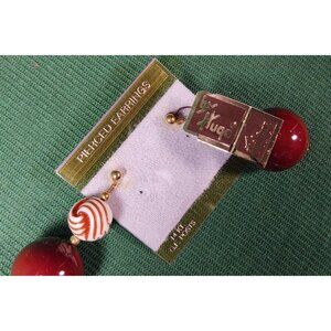 Add a pop of color to your ensemble with this striking red and white beaded necklace and earrings set by Hugo. It's like a candy cane in jewelry form, minus the sticky mess. Perfect for those who want to make a statement without saying a word.