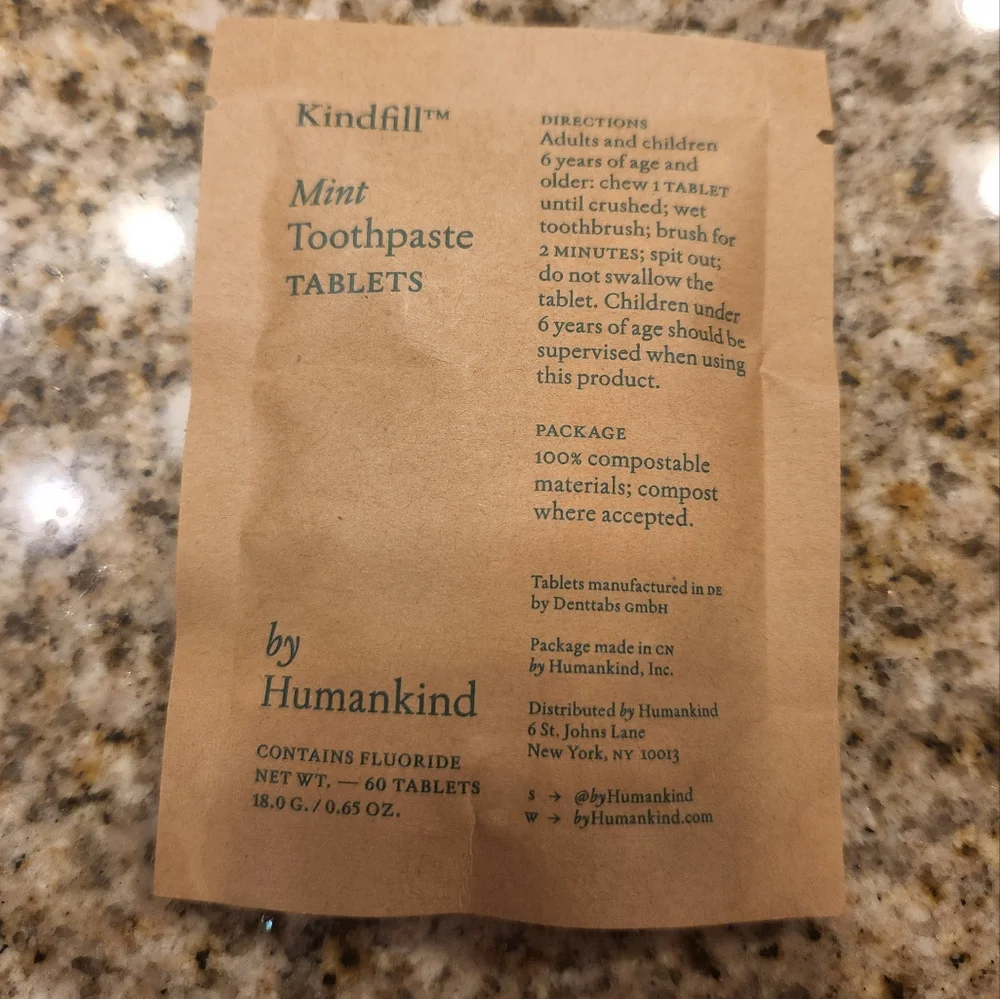 Refill bag of 60 Toothpaste tablets. Peppermint flavor. love them, but set up a subscription and have too many on hand.