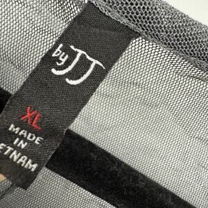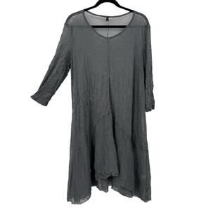 By JJ size XL Midi Dress Sheer Mesh Overlay Crinkle Knit Gray. A-line, 3/4 dsleeve Asymmetrical Lagenlook