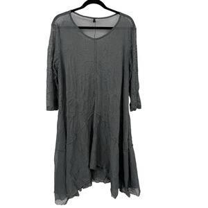 By JJ Midi Dress Sheer Overlay Crinkle Knit Gray Asymmetrical Lagenlook size XL