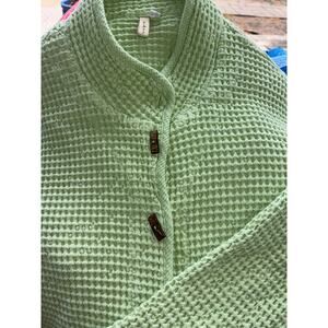 By JJ Waffle Knit Light Green Button Cardigan/Jacket L Wood Buttons Lagenlook