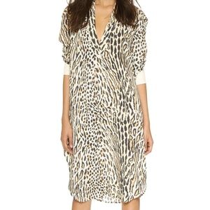 By Malene Birger Animal Print Long Sleeve Midi Silk Shirt Dress $545 Retail