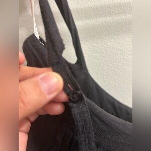 Black cotton dress with square straight and neckline, straps have buttons on them to adjust the strap length, button keyhole closure on the back, bottom of dress has tiered eyelet hem,a slip is attached. Black is faded but gives it that preloved summer gypsy boho vibe. No flaws observed, offers welcomed.