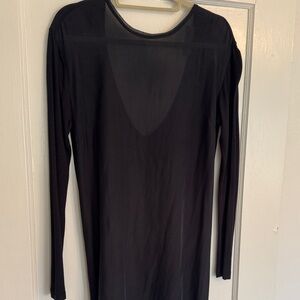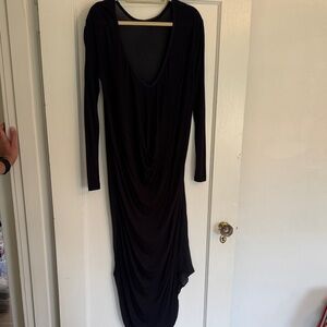 Chic black dress with long sleeves. Perfect for elegant occasions. Flattering fit and timeless style.